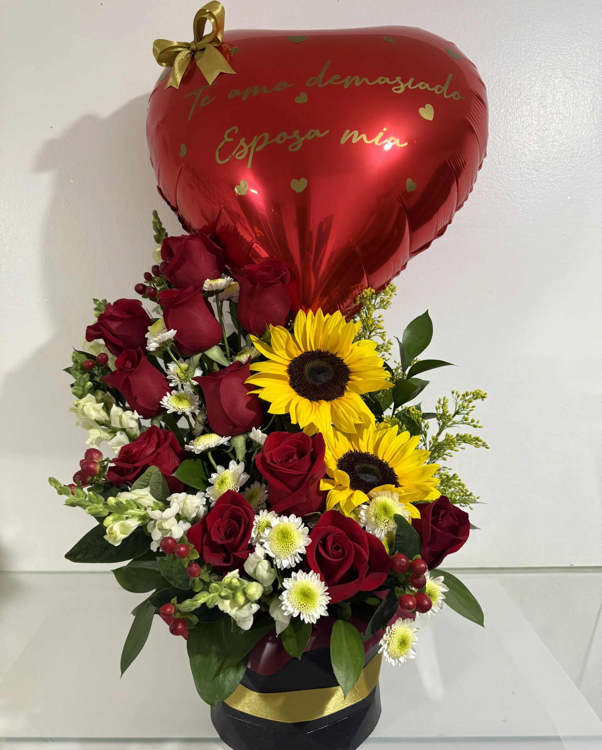 🎈 Globo Metalizado de Corazón: Incluye una frase romántica que eleva la sorpresa y transmite tus sentimientos desde el primer vistazo.